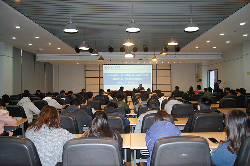 聘任仪式后,蔡培作了题为《锅炉高温腐蚀和空预器堵塞机理分析和治理措施》的学术报告,他从火电厂生产中出现的实际问题出发,结合负责的两个科研项目详细分析了解决现场工程实际问题的方法和取得的成效,给参会师生带来了电力行业新技术的分享。