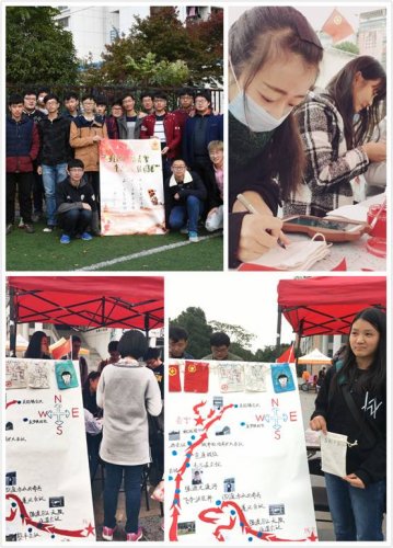 日前,该支部带着高校长征接力的照片在学校北大活广场设点宣传,吸引了不少同学驻足观赏,起到了良好的宣传效果。谈及感受,一位支部成员的自豪之情溢于言表,“虽然我们无法亲自重走长征路,但是利用微博这一新媒体平台,我们随着照片走过那两万五千里的征程。这一张张照片的传递过程,是我们对长征的回顾与宣传,是对长征精神的传递与弘扬,这将激励着我们不忘初心,走好未来新的‘长征路’”。