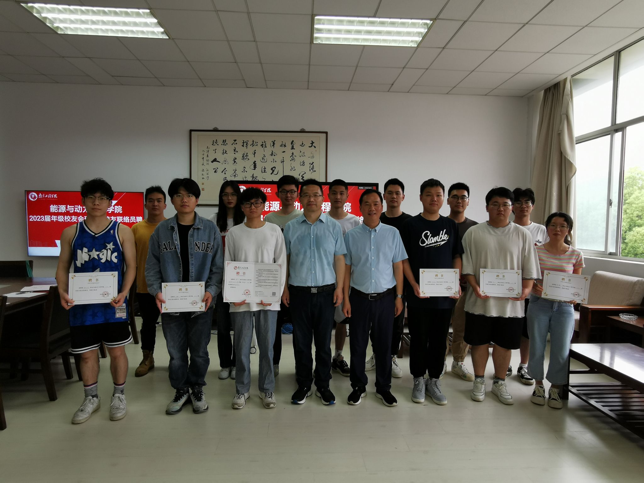 2023届毕业生年级校友会校友理事暨联络员的决定》。决定集控191班厉彦民担任2023届年级校友会会长,能动191徐宁担任副会长,集控191王泰淇担任秘书长,能动192强建军、核工程191徐振伟、新能源191陈政权等同学担任副秘书长、理事和联络员。接着,张书记为他们一一颁发聘书。最后,张书记简要回顾了学校及AV研究所