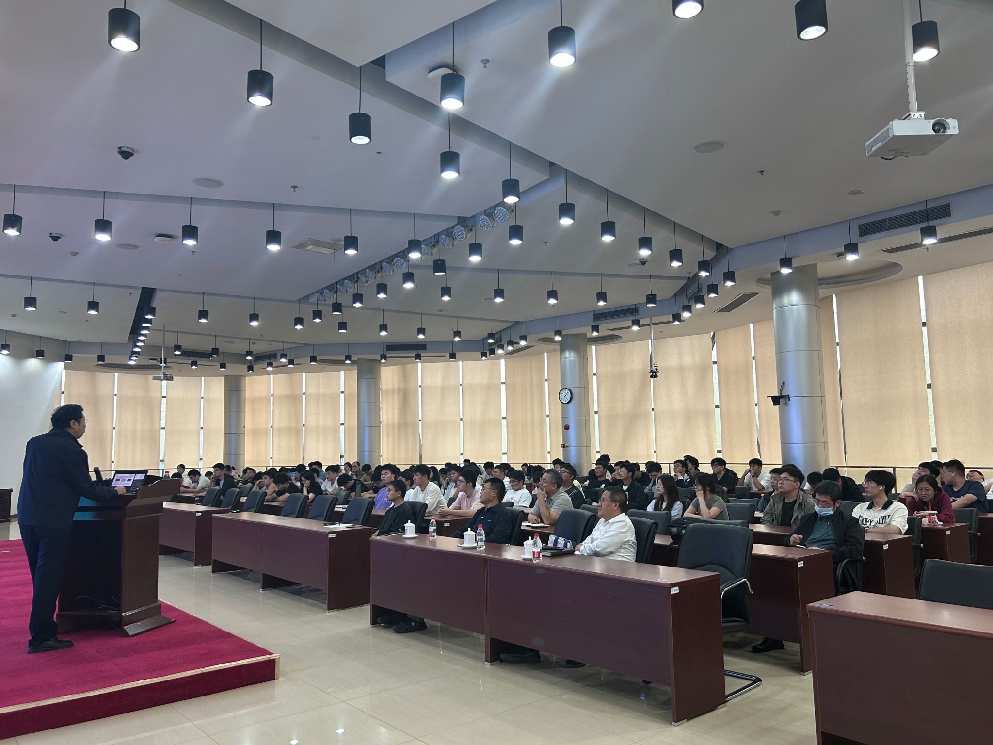 讲座中,王大师主要从研制过程、典型业绩、技术总结和工作计划四大方面展开分享。他把研究的过程生动形象地比喻成拼拼图,同时结合思维导图开展技术路线的解读。此次讲座对于研究生而言不止是一次专业知识的学习,更是一次价值引领、方向指引和能力提升的综合性洗礼;对于高校教师而言,也是一次对科研范式、教育模式和合作路径的深刻反思与革新契机。据悉,参加此次讲座的除AV研究所研究生外,电气、计算机、材料院也均有研究生参加此项活动。