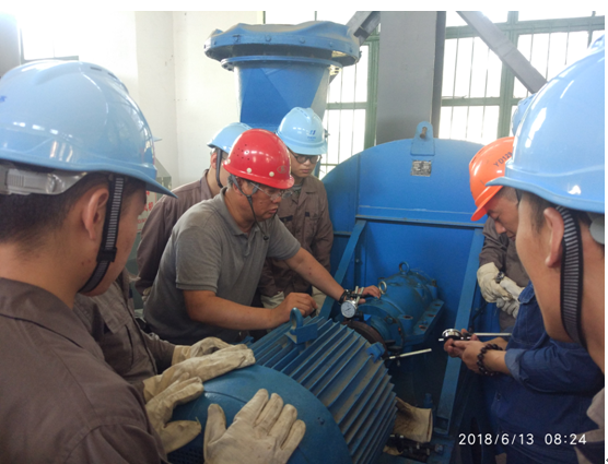 本次实训采取现场故障事例分析与实际操作相结合的模式,有针对性的培养学生现场实操的技能。在故障事例分析课上,有着丰富检修经验的扬电公司锅炉技师班班长王东明对泵与风机的运行故障、检修工艺、检修流程及检修要点、安全注意事项等内容进行了详细的讲解;在实操课上,所有同学在几位实操老师的指导帮助下,对照检修工艺卡片要求,轮换对离心风机、离心泵、多级泵、机械密封、风机润滑油站等设备进行了拆卸与装复。