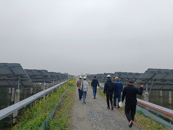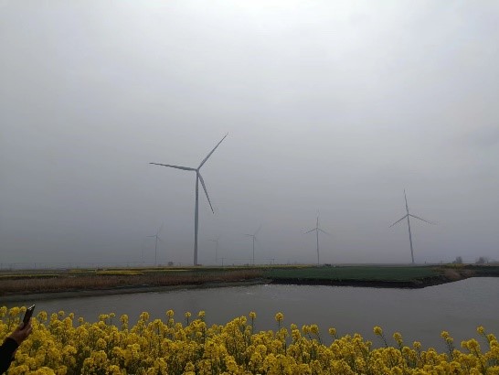 副院长薛锐带领新能源专业的教师一行四人驱车来到泰州兴化—江苏新能源风力发电场和光伏电站,深入实地考察了企业的实习条件和实习内容。华电新能源公司兴化项目部的颜庭欢主任热情接待了我们,首先,颜主任向我们详细介绍了华电新能源兴化的两个项目,一个是光伏电站项目,装机178MW,属于渔光互补的项目,在开发循环渔业的同时提供绿色电力;另一个是风力发电场项目,总装机50MW,布置20台单机容量为2.5MW的风力发电机,并到现场实地了解了两个电站的运行情况以及拟实习内容。薛院长表示,华电新能源公司兴化项目部同时具有两种新能源电场,非常适合新能源专业的学生进行毕业实习,同时就实习的细节问题,如实习内容、日程安排、住宿、餐饮以及交通等问题进行了详细地沟通与交流。通过这次实地考察,为接下来学生的实习工作做好了铺垫,为进一步提高学生高质量的实践学习奠定了良好的基础。