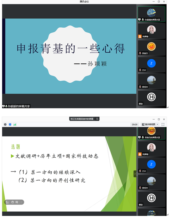 8月25日上午9:30,AV研究所 开展了国家自然科学基金申报经验交流兼2022年国基申报动员会,会议邀请了AV研究所 今年获得国家自然科学基金的吴俊杰老师和孙颖颖老师作经验分享,该院青年教师们参加了此次线上会议。