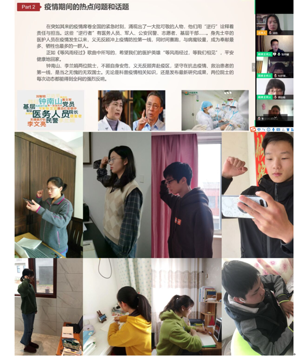 “在此次新冠肺炎疫情防控期间,我们看到了许许多多默默奉献的普通党员同志,他们都是我看齐和学习的榜样。我自己也筹划拍摄了战‘疫’MV,发表抗‘疫’倡议书,进行防疫知识普及。我为生在社会主义中国感到骄傲和自豪,我将继续积极发挥党员先锋模范作用,为疫情防控工作贡献力量。”在交流发言与经验分享环节,该院学生党员苏子璇同学这样说道。