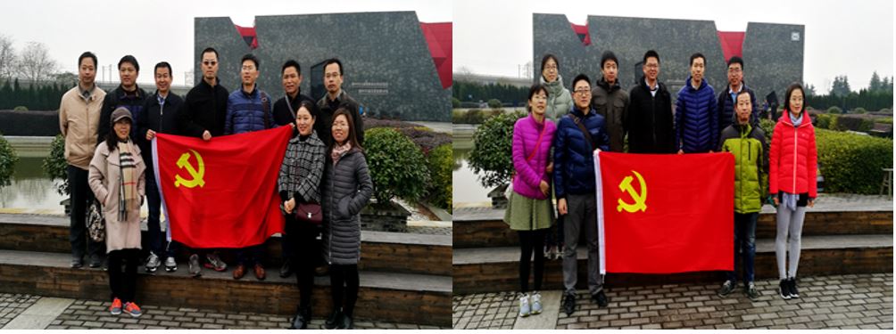 全体党员在新四军纪念馆前合影留念