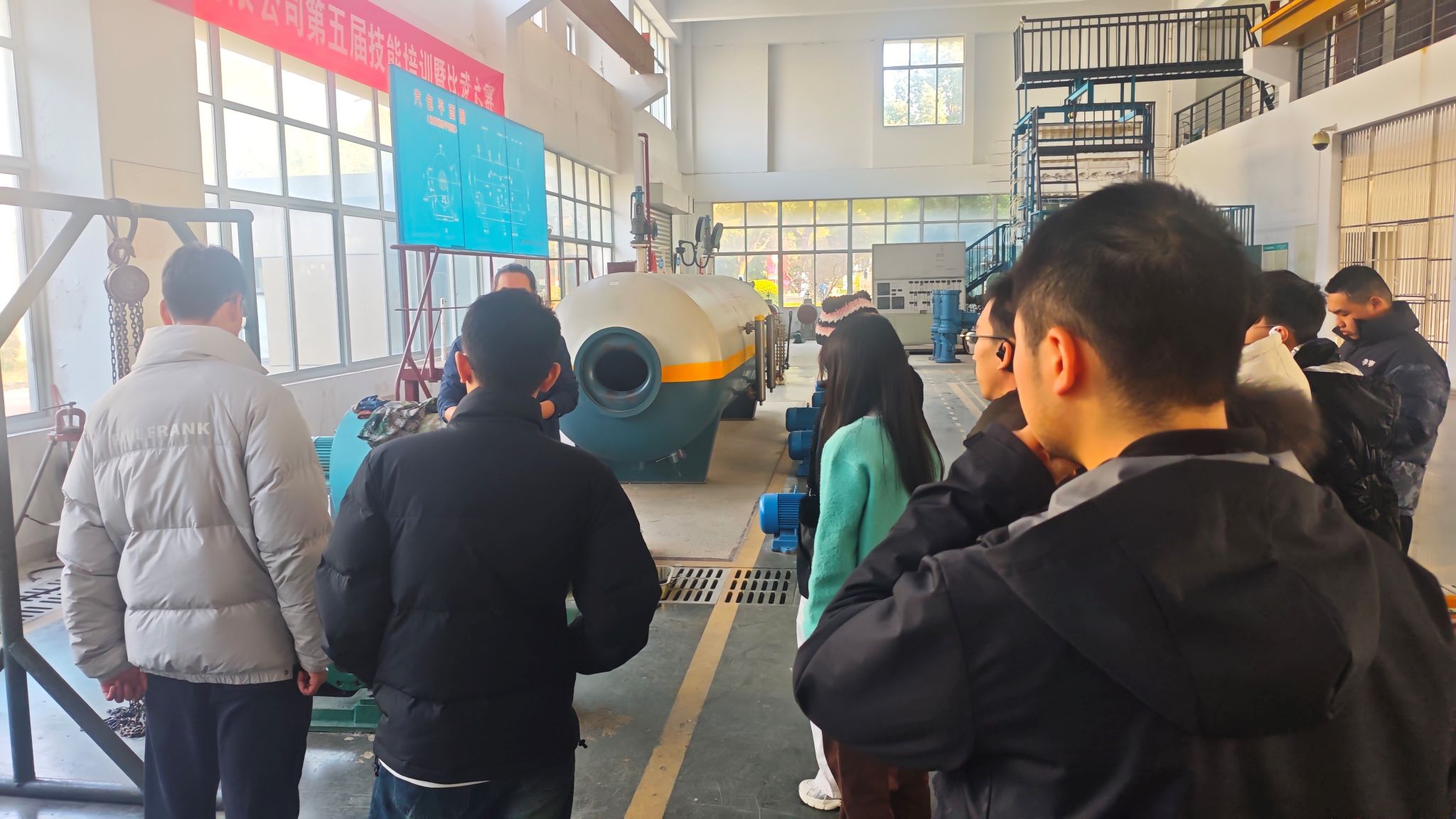活动随后组织参与者前往能动专业实习与实训基地进行实地参观学习。在基地,参与者们得以近距离观察能源生产的核心设备,这种沉浸式的体验,将书本上抽象的锅炉、汽轮机、水泵、风机、阀门等等变成了可触可感的实体,让能源生产的运作模式变得清晰具体,也让参与者深刻体会到能源动力工程技术在保障千家万户能源安全稳定供应中的精细与严谨。