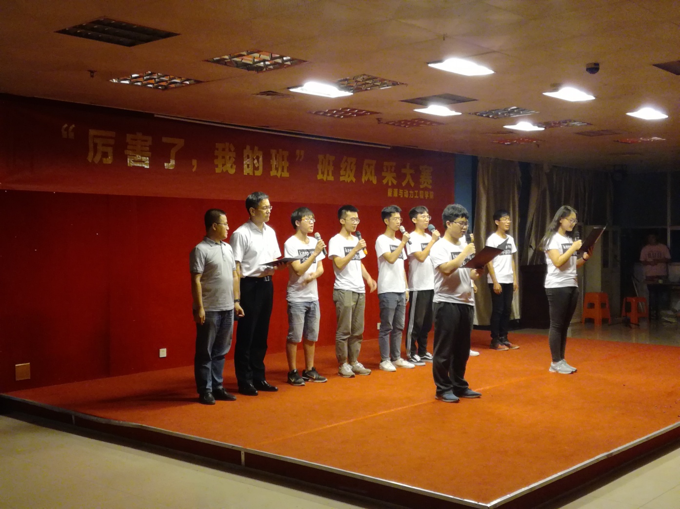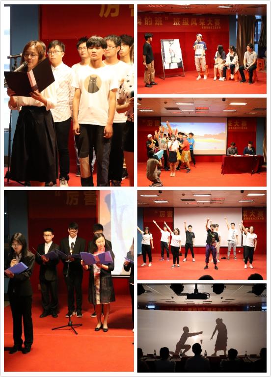 大赛由“班级风采汇报”和“才艺表演”两个部分组成。在“班级风采汇报”环节,各班汇报人通过PPT、视频等形式,结合本班情况,从思想引领、班级建设、学风建设、文体活动等方面对班级进行介绍,展现了近一年来班级的成长过程及所取得的成绩。在“才艺表演”环节,各班同学凝聚智慧,邀请班主任和“第二班主任”共同参与,用合唱、话剧、朗诵等多种表演形式为现场观众带来了班级成长的展示。暖通171班的《新闻大事件》,暖通172班的话剧《华妃传》,能动172班的杯子舞《稻香》,核工程171班的合唱《当你老了》,能动171班的朗诵《致橡树》,集控172班的《影子戏》等赢得了阵阵掌声。校党委副书记、纪委书记刘志远老师和热自171班合唱加朗诵的《骄傲的少年》将现场气氛推向高潮。