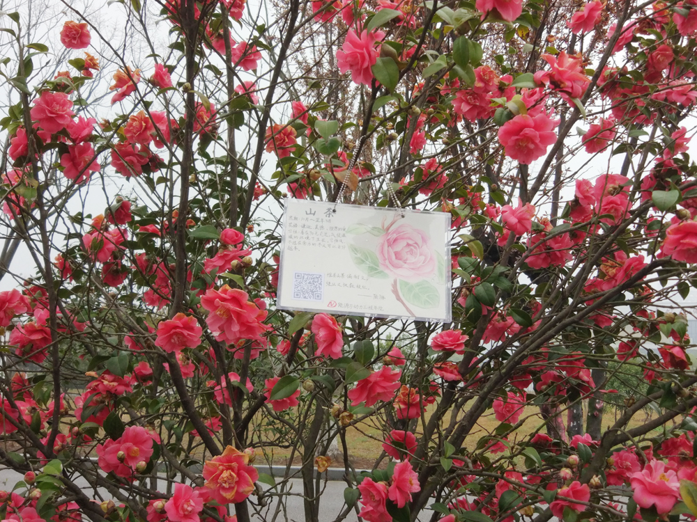 的青年志愿者们为校园的桃花、茶花、紫荆等树木挂上了“身份证”。