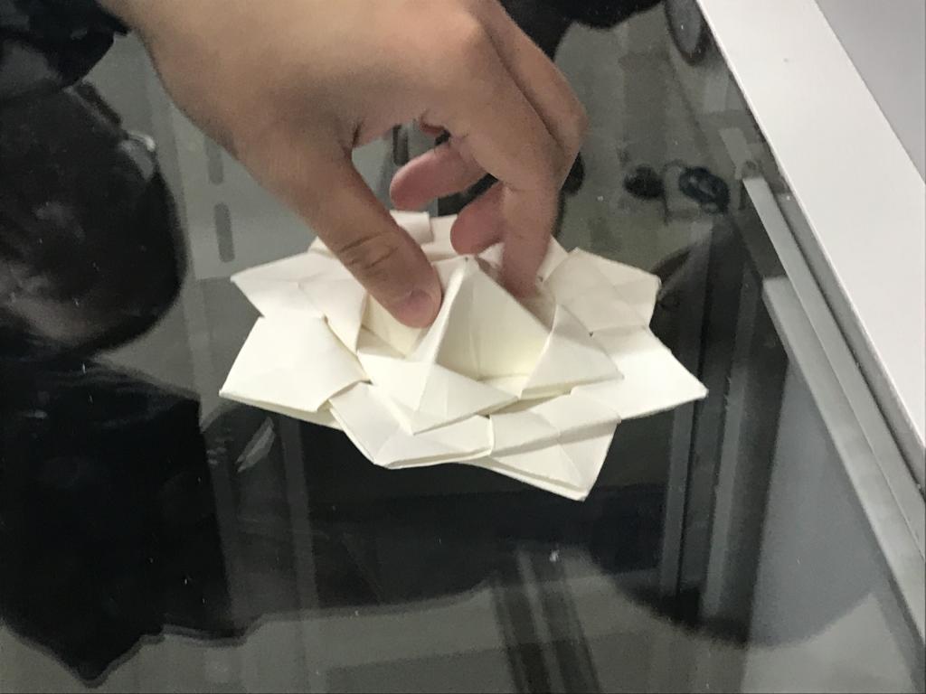 活动要求同学们运用自己的物理知识将纸张、牙签、木条、瓶盖等材料制作陀螺,通过2轮计时看谁制作的陀螺在桌子上转动的时间久为胜。活动现场,同学们以小组为单位,集思广益,制作出风格各异、创意十足的纸陀螺。最终的定点旋转环节更是吸引了同学们的围观,每个参赛作品的旋转、落地都伴随大家的阵阵惊呼。经过激烈角逐,来自热自181班杨帆、郜志杰、宋飞扬三人组获得比赛的第一名。