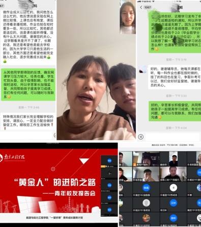 在此次“云”家访期间,该院辅导员老师特别联系了退役复学的学生家庭,了解他们居家期间的学习、生活情况。“本来退役复学以后自己在学习方面就比较吃力,线上学习无法跟上老师和同学的节奏,因此时常感到困惑与无助。”在问到线上学习是否存在困难时,2019级新疆籍学生W同学这样说道,但是他表示军队磨炼了他的意志品质,他不会为眼前暂时的困难而轻言放弃,该生家长也表示,虽然新疆与南京有时差,但是儿子却没有落下一节课,他们会一起帮助孩子渡过难关。