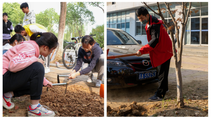 结合植树节开展种植树苗活动。只见能动学子挥动工具,分工合作,清捡杂物,清除杂草,为植物浇水施肥。大家以高度的热情、饱满的干劲融入到活动中,不少同学大汗淋漓,干的热火朝天、不亦乐乎。虽然参加活动的同学们的鞋子、身上都沾满了泥土,但大家表示此次活动很有意义,既美化了环境,又感受到了劳动的快乐。