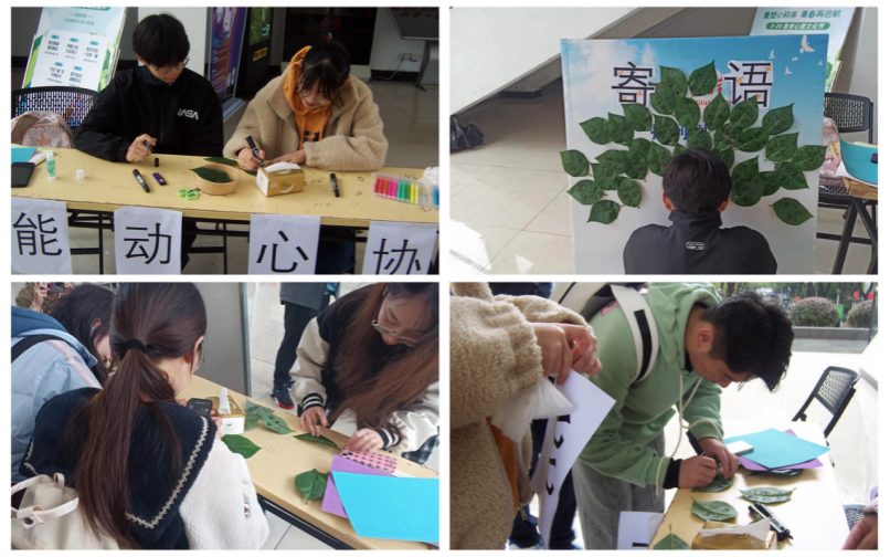 举办“春风有信”书信寄语活动。本次活动采用最传统的书信来表达同学间最淳朴的情感。参加活动的学生在校园各处寻找能代表春天的叶子,邀请全院师生在树叶上留下了对未来美好生活的期盼或对亲人朋友的祝福,并将其制作成展板进行展示宣传。“春暖花开,好消息都在赶来的路上了,希望自己能够顺利上岸”,正在耐心等待考研复试结果的同学如此写道。