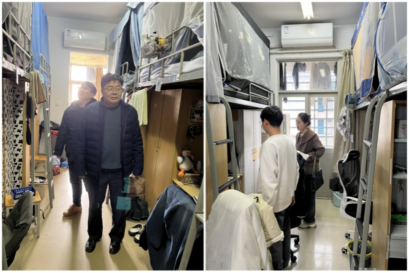 领导班子、辅导员深入学生宿舍,关心同学们学习生活,重点查看了电器使用、宿舍卫生等细节,同时叮嘱同学们严禁私拉乱接电源线、使用大功率电器以及电动车电瓶充电等,紧绷安全这根弦,共同营造一个安全、和谐的生活环境。