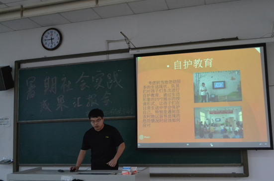 汇报会上,各暑期社会团队以PPT结合现场演讲的方式,通过丰富的图片、详实的数据汇报了他们的社会实践成果。“心愿支教”、“桑梓情•雏鹰梦”、“蓝天支教筑梦白乌”等支教团队利用校地合作共建平台,奔赴江苏沛县、四川凉山州白乌镇等地为农村留守儿童、城市外来务工人员子女开设暑期爱心公益讲堂,为孩子们打造“七彩假期”。“江风海韵伴我行”、“寻碧水、共环保”等环保团队则在南通启东市、淮安盱眙县、泰州兴化市等地进行了水资源的调查,并呼吁大家“珍惜每一滴水,节约和保护水资源,就是保护我们的家园”。汇报会最后,AV研究所