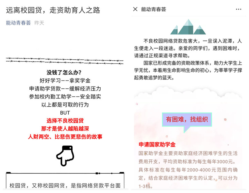 依托微信公众号“能动青春荟”,广泛宣传资助政策,普及征信、金融等相关知识,倡导学生树立诚信观念。鲜活的案例、生动的动态图片,让广大学生在潜移默化中了解国家的资助政策,感受诚信的内涵和意义,使诚信教育主题活动更接地气。