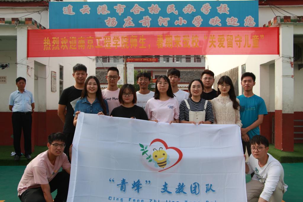 “青蜂”实践团队赴连云港杨庄前河小学为留守儿童开展“大手牵小手,青峰筑梦行”暑期社会实践活动。志愿者们满怀热情,为留守儿童传授知识、开阔眼界。