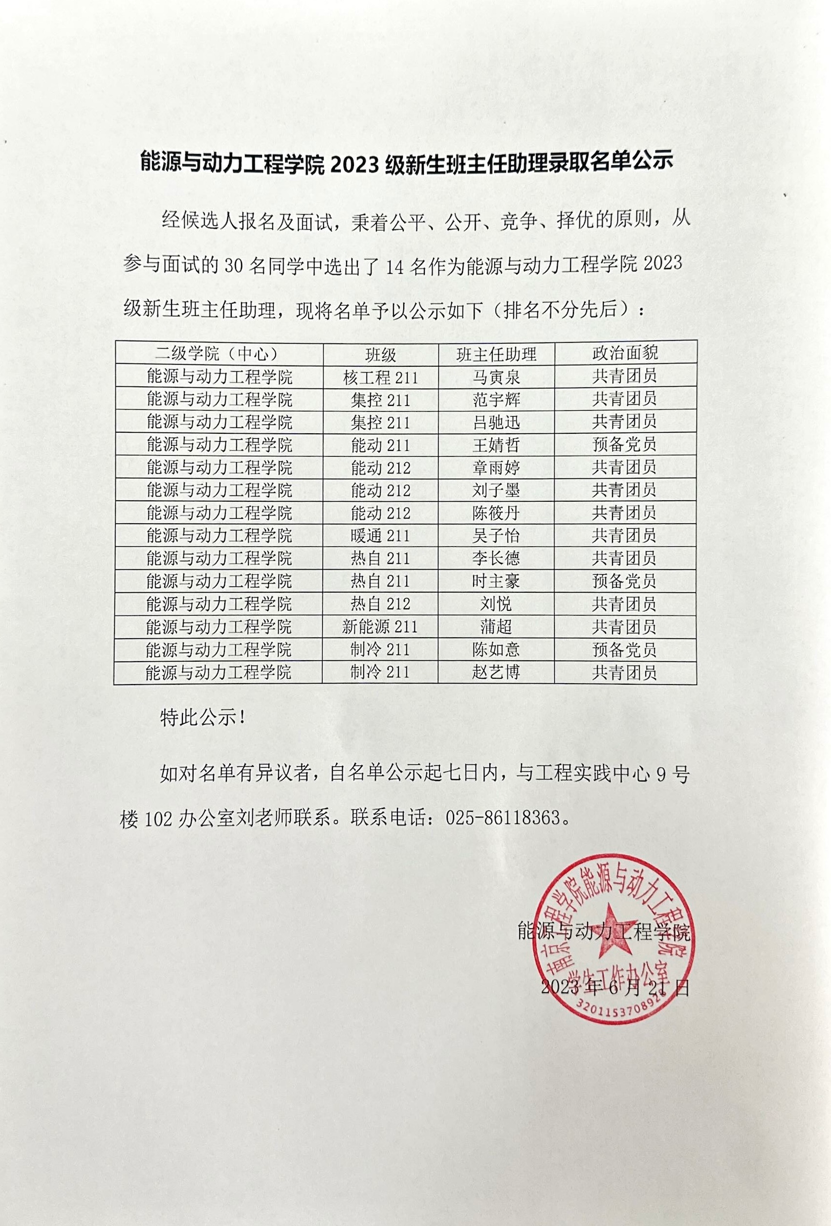 AV研究所 2023级新生班主任助理录取名单公示